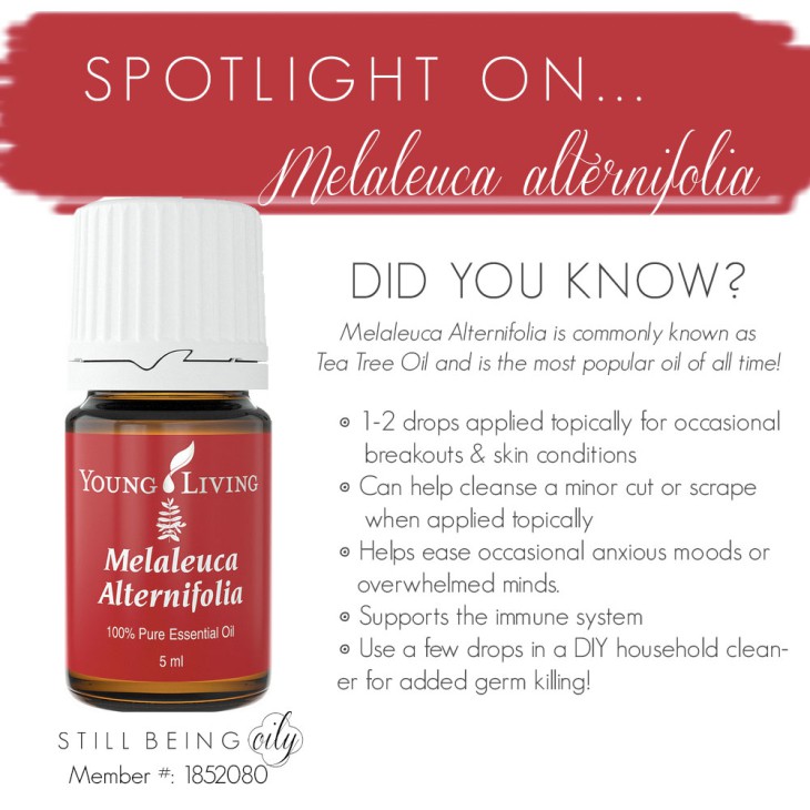 Tea Tree essential oil also known as Melaleuca or Melaleuca Alternifolia oil is one of the most widely used and extensively researched essential oils. Tea Tree Essential Oil 15ml by Young Living. Ships from and sold by Choose You.